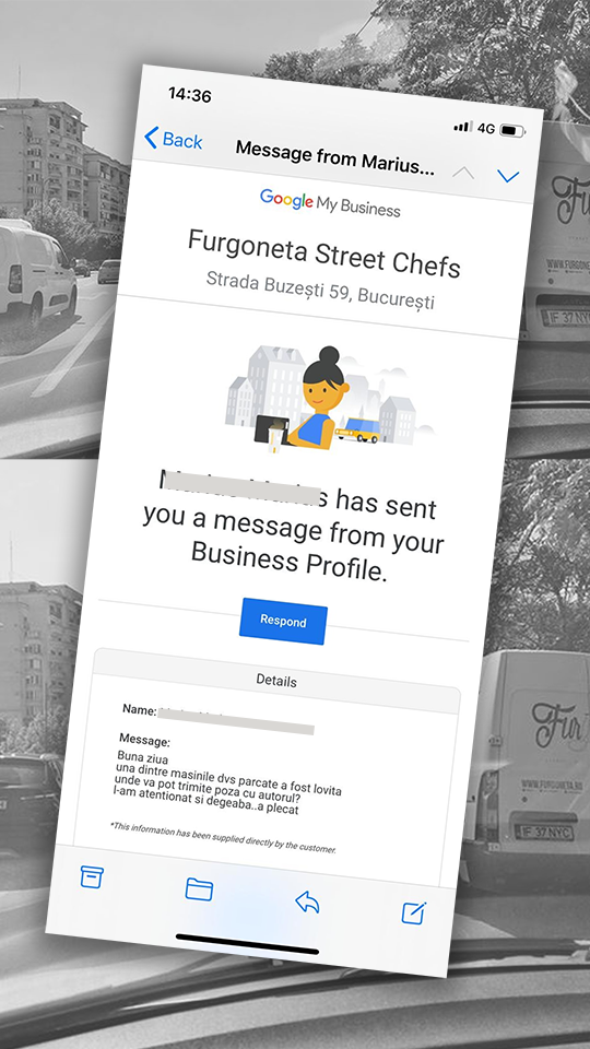 La aproximativ două trei zile de la colantare, ne trezim cu foarte multe mesaje pe toate rețelele: și pe facebook, pe e-mail, pe google business, pe instagram, peste tot pe unde puteam fi contactați, inclusiv la telefon (deși nu am pus și nr de telefon pe mașină).